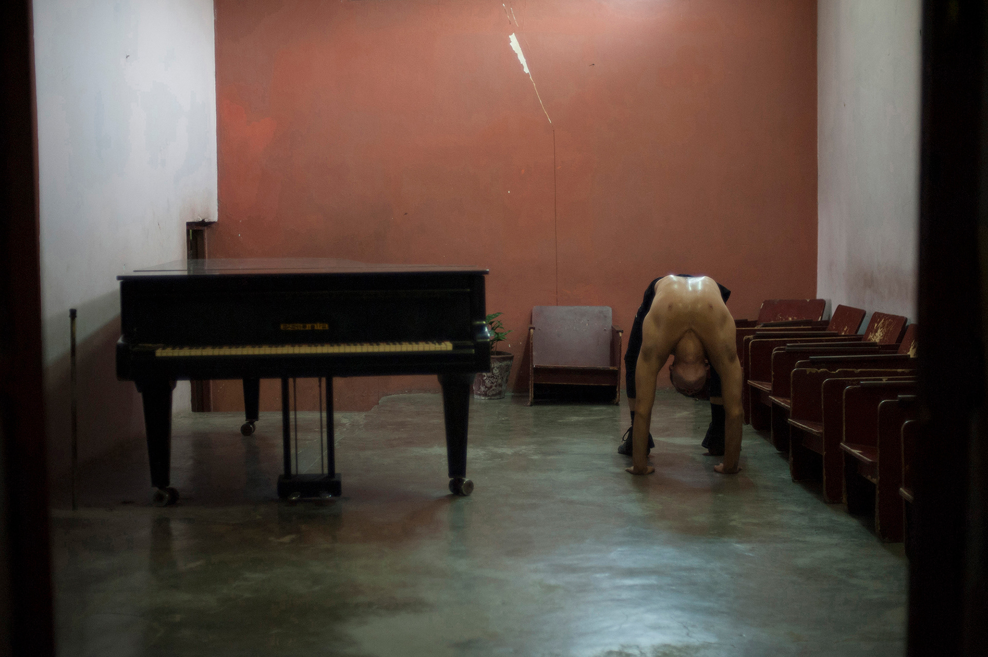 L'univers du cirque porte en lui quelque chose d'une mélancolie sacrée, entre ombre et lumière. Alors que leur métier consiste à procurer de la joie aux autres, les artistes de cirque vivent souvent dans des conditions précaires et surtout en marge de la société. J’ai passé deux mois à accompagner la tournée du cirque national cubain. Cette année-là pour la première fois de l’histoire deux jeunes artistes nord-américains étaient invités à prendre part au spectacle, une présence symboliquement forte alors que les deux pays venaient d’entamer leur processus de rapprochement. Ce qui m'a fasciné dans cette aventure cubaine, c’est l'incongruité de la vie de ces artistes, mais aussi leur générosité, et leurs moments de solitude. J'ai voulu capturer des instants que le spectateur n'a pas l'occasion de voir, dans l’intimité de leur quotidien, parce que porter à la connaissance de chacun la différence, c'est la rendre belle aux yeux de tous.